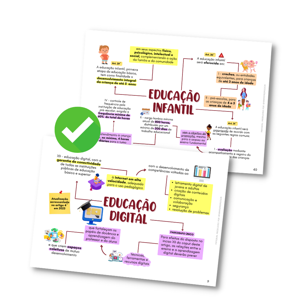 Neste material você vai encontrar em forma de mapas mentais, os artigos referentes à Educação (205 ao 214). Conteúdo atualizado.