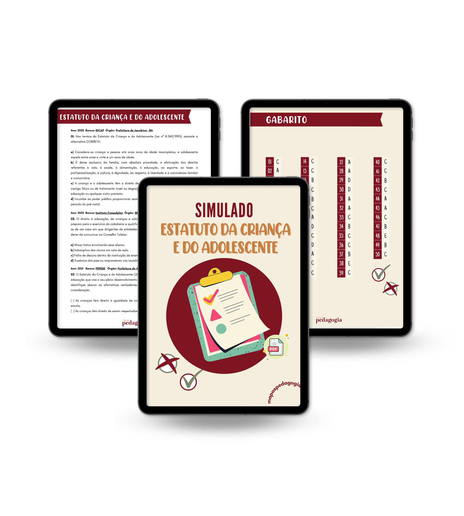 Nesse simulado você terá 50 questões gabaritadas de concursos educacionais para você complementar seus estudos e não sofrer mais estudando legislações!