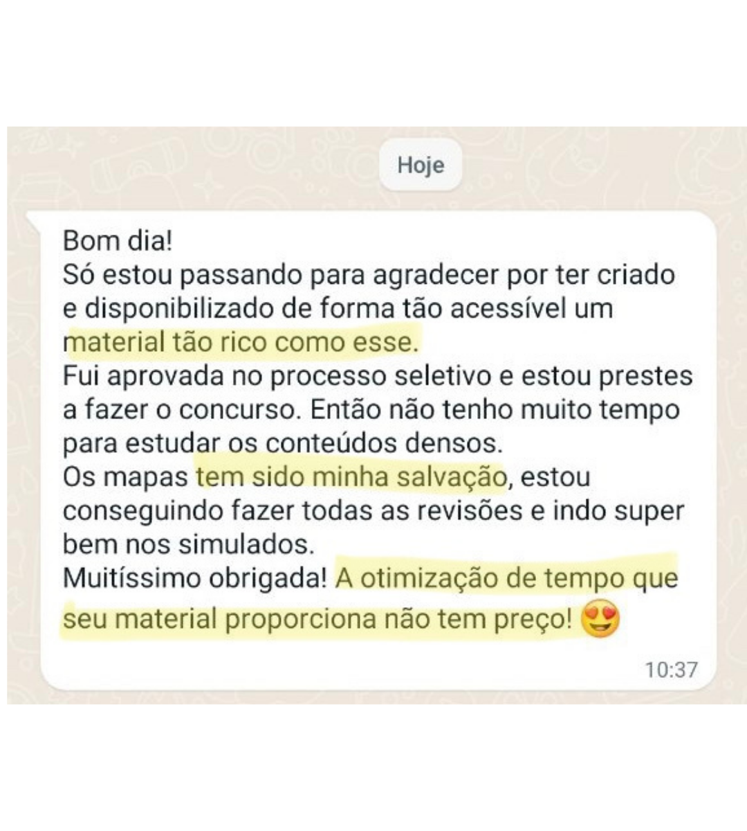 Em aulas presenciais ou on-line de cursos de graduação ou preparatório de concursos, NÃO é permitida a exposição do material por nenhum meio, porém você pode se inspirar nos mapas. Em nenhum caso, pode haver o compartilhamento do material com os alunos e nem postagens do conteúdo dos mapas em redes sociais (Facebook e Instagram).
