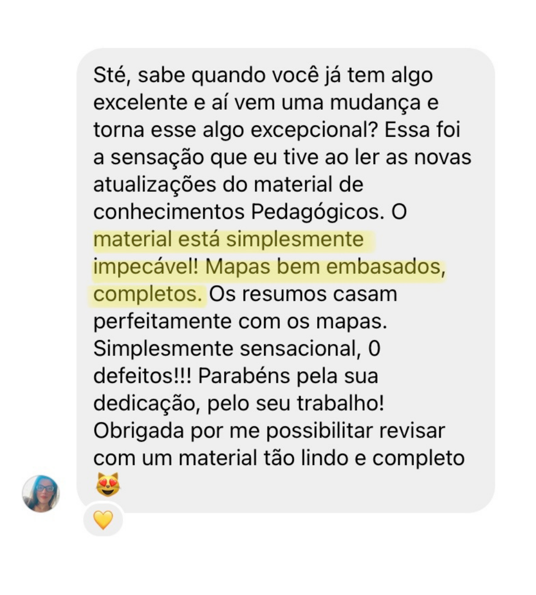 Meu nome é Stéfany Caroline, sou Pedagoga e há 3 anos facilito a jornada de estudantes de Pedagogia através dos Mapas Mentais. Meu principal propósito com esses materiais é proporcionar uma abordagem mais dinâmica aos seus estudos, visando melhorar sua capacidade de memorização e facilitar seu caminho rumo aos seus objetivos.