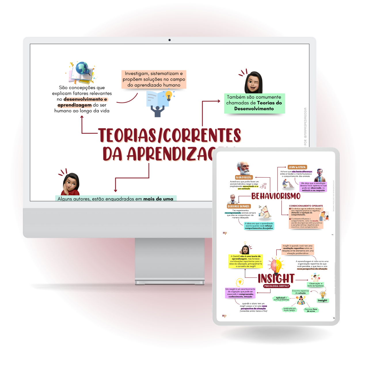 Mas a boa notícia é que estudando com o material Teorias da Aprendizagem em Mapas Mentais você não terá mais esses problemas, porque ele foi produzido com um único objetivo: te ajudar a estudar e a revisar melhor para ser APROVADA no concurso dos seus sonhos.